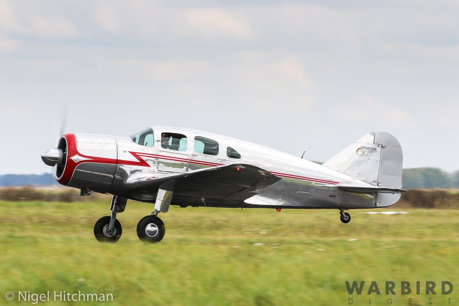 Sébastien Mazzuchetti’s superb Spartan 7W Executive (N47W) coming in to land. (photo by Nigel Hitchman)