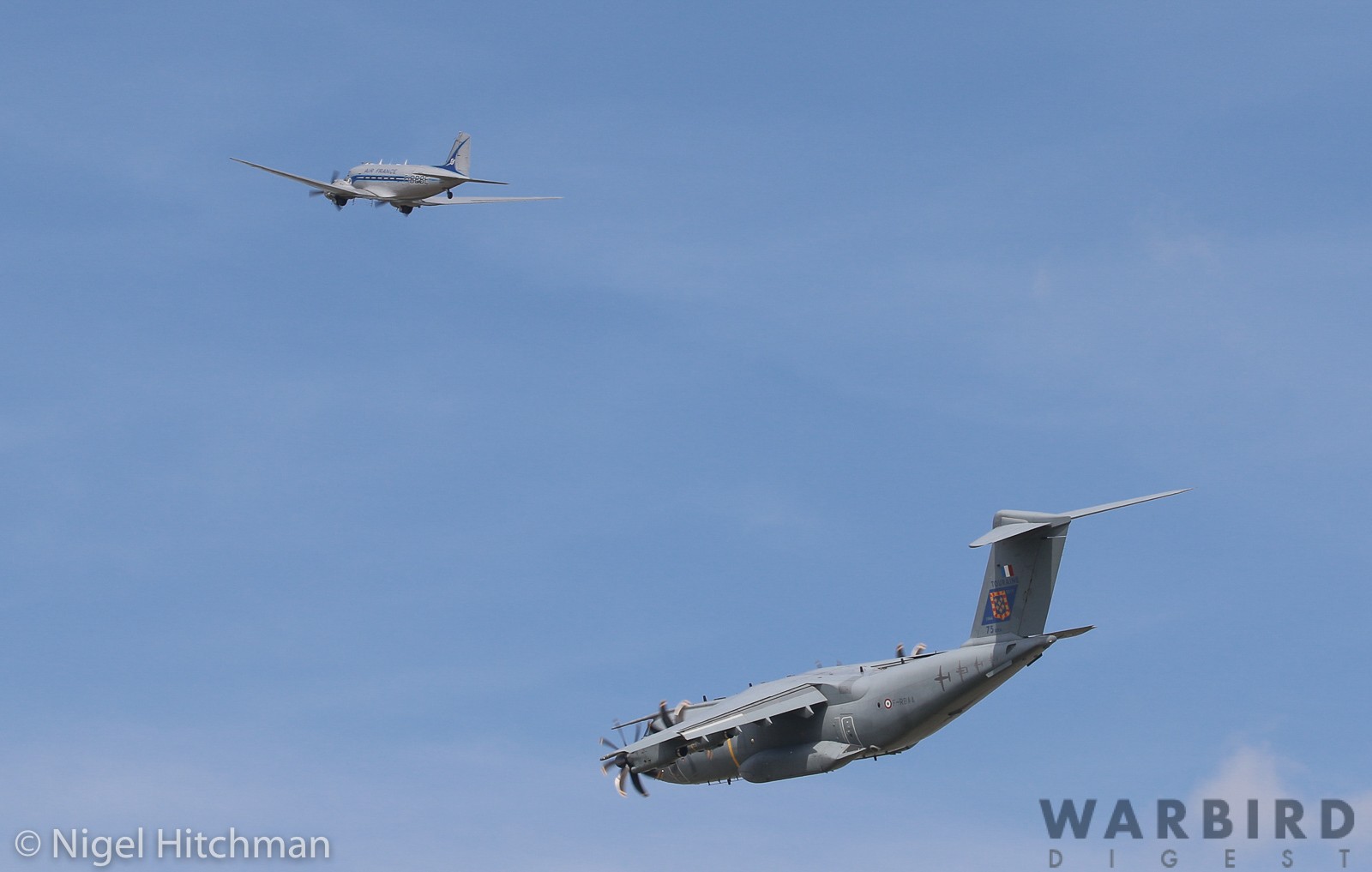The A400M and DC-3. (photo by Nigel Hitchman)