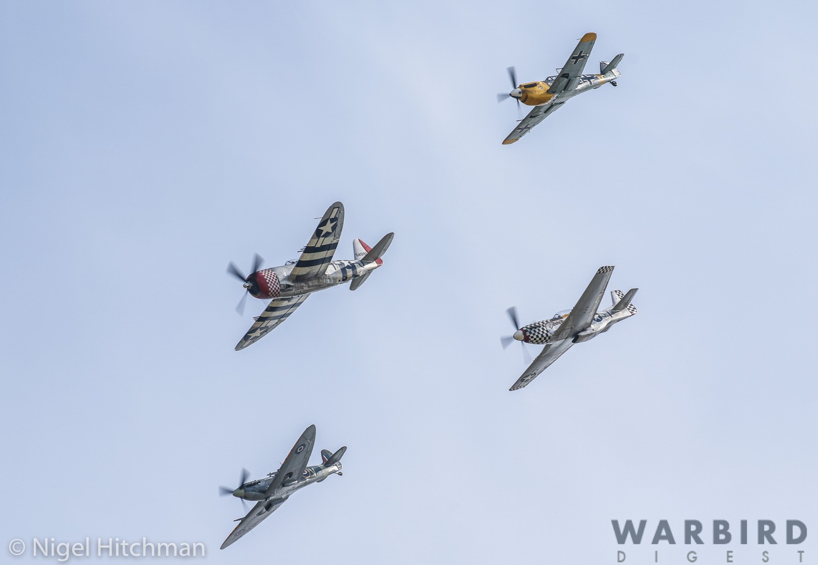 John Gowdy in Republic P-47D Thunderbolt 45-49192 Nellie B and Andy Durston in North American P-51D Mustang 44-84847 Contrary Mary. (photo by Nigel Hitchman)