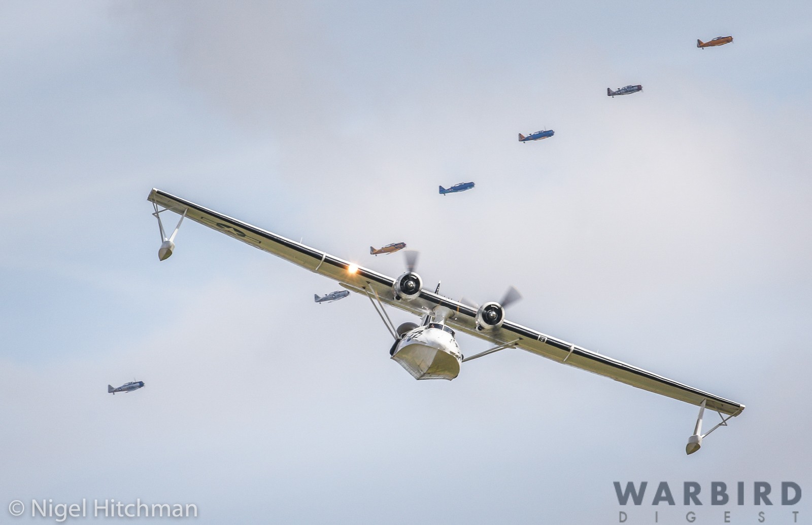 The Canso A in waterlanding guise, with a formation of T-6/Harvards to the rear. (photo by Nigel Hitchman)