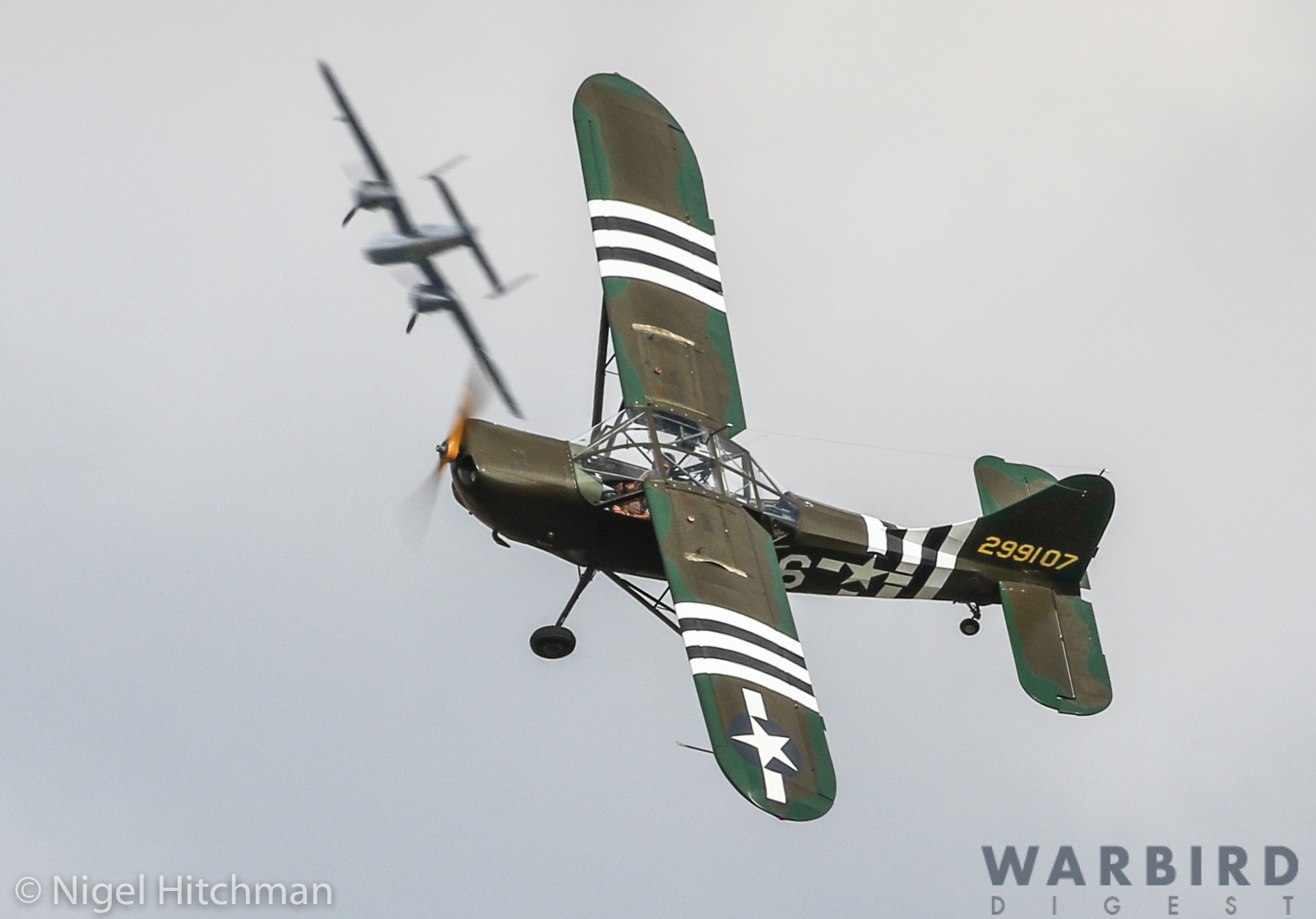 Stinson L-5 (42-99107) with the Red Bull Mitchell to the rear. (photo by Nigel Hitchman)