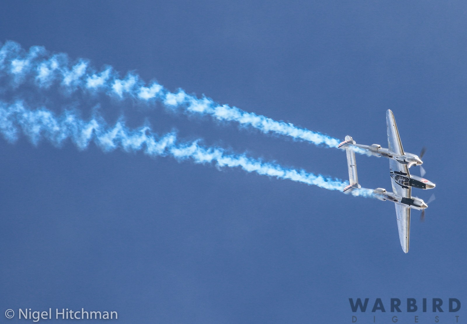 The Red Bull P-38L performed a spirited solo routine. (photo by Nigel Hitchman)