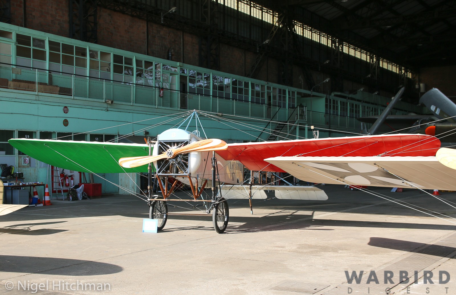 A replica Blériot XI (F-AZQB) inside the AMPAA hangar. This aircraft is more or less authentic to the set up which Louis Bleriot had when he made the first flight across the English Channel in 1908. (photo by Nigel Hitchman)
