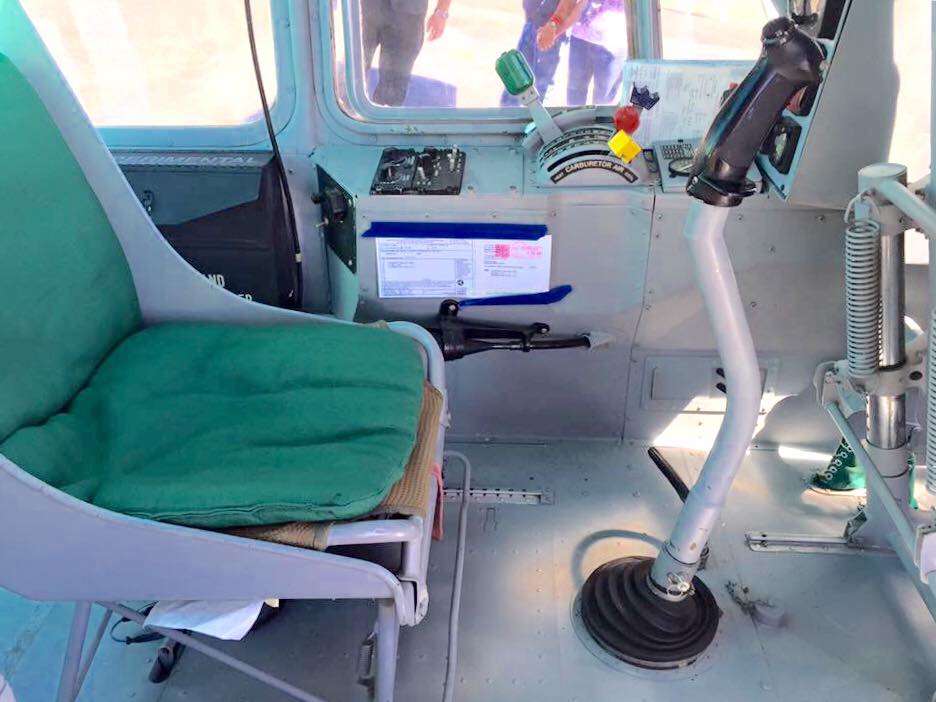 Pilot’s seat and control column of Aermacchi AM.3CM Bosbok (Bush-buck), N949CM at McNary Field, Salem, Oregon. (Randy Malmstrom)