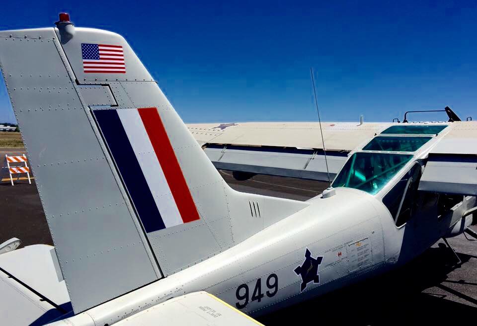 Aermacchi AM.3CM Bosbok (Bush-buck), s/n 949, N949CM. This particular airworthy aircraft is in the markings of 42 Squadron “Per Spicimus” (We Survey) of the South African Air Force, based at Potchefstroom, South Africa. The most recent owner listed is David A. Hoelscher in Kernville, Texas*.