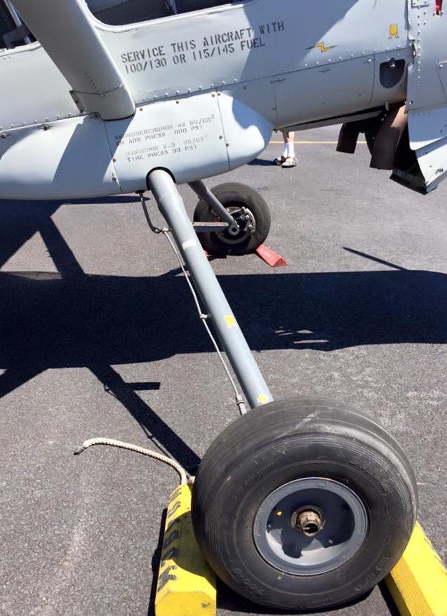 Detail of the landing gear on Aermacchi AM.3CM Bosbok (Bush-buck), N949CM at McNary Field, Salem, Oregon. (Randy Malmstrom)