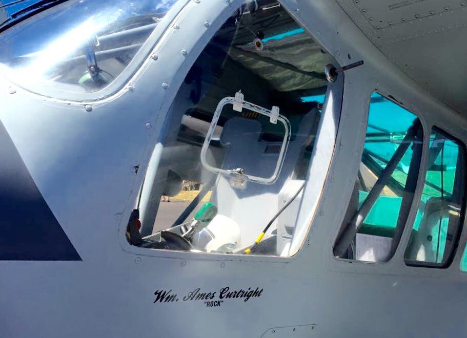 Pilot’s helmet on the forward pilot’s seat of Aermacchi AM.3CM Bosbok (Bush-buck) N949CM at McNary Field, Salem, Oregon. (Randy Malmstrom)