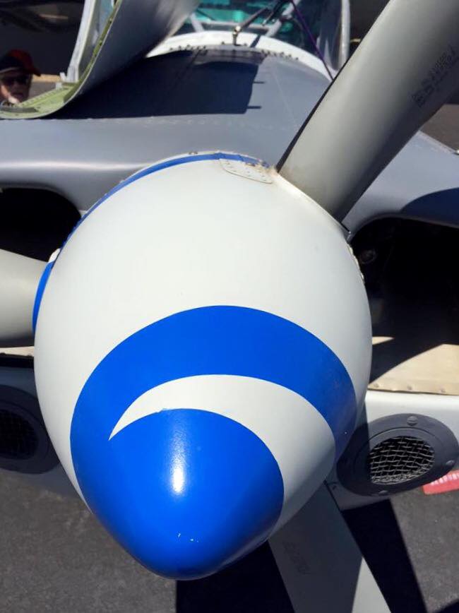 Propeller spinner of Aermacchi AM.3CM Bosbok (Bush-buck), N949CM at McNary Field, Salem, Oregon. (Randy Malmstrom)