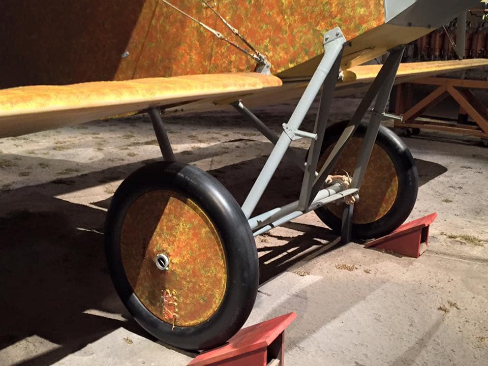 The undercarriage was of the standard V-type with the struts joined by a horizontal tube with steel cables for strength and stability. The shock absorbers were also standard bungee chords (“bungee”or “bungie” is thought to be British slang for India-produced rubber). The main differences between the series were the engines (the Aviatik (Berg) for example, used Austro-Daimler engines), structural, gun, and radiator modifications.
