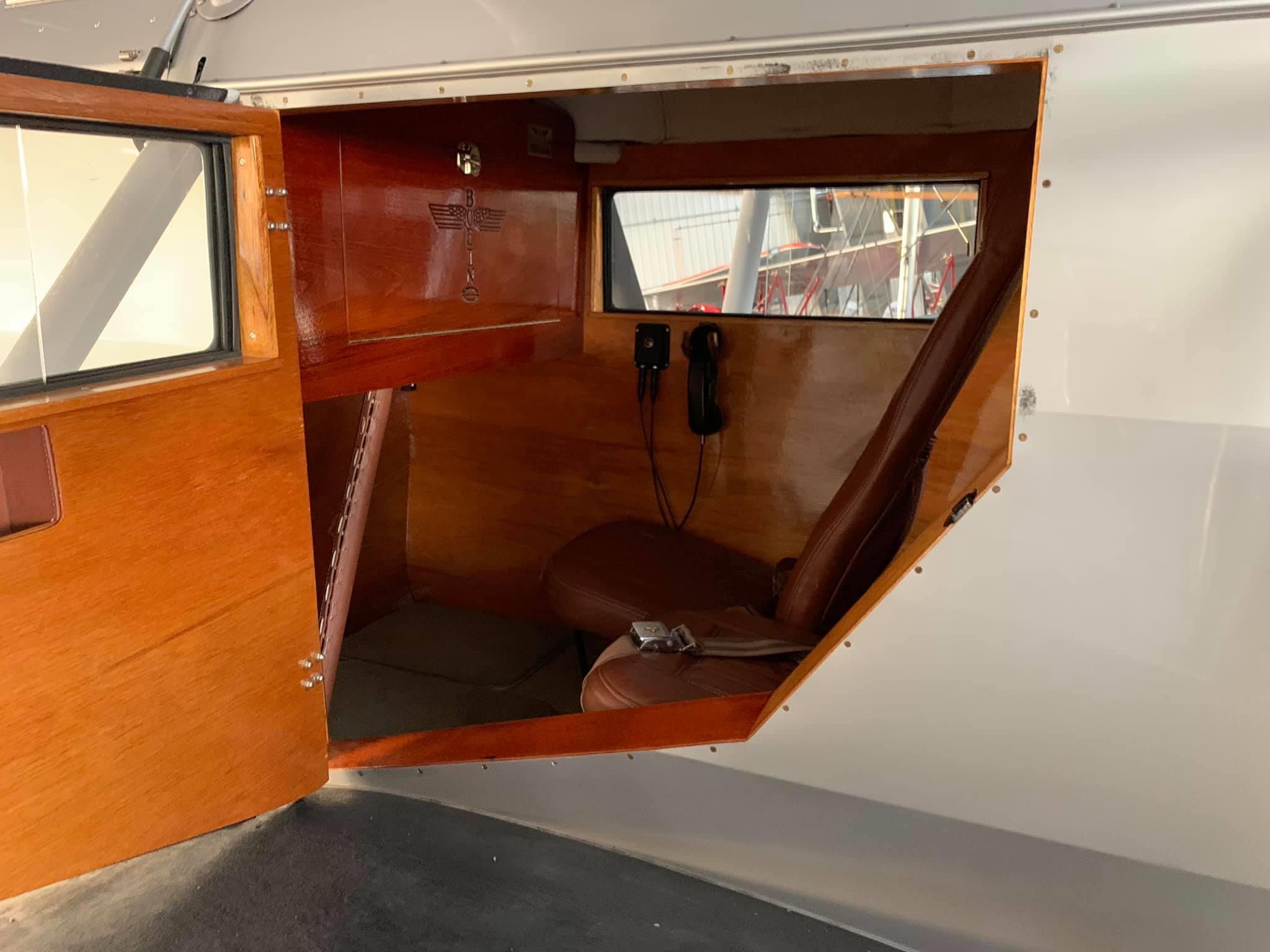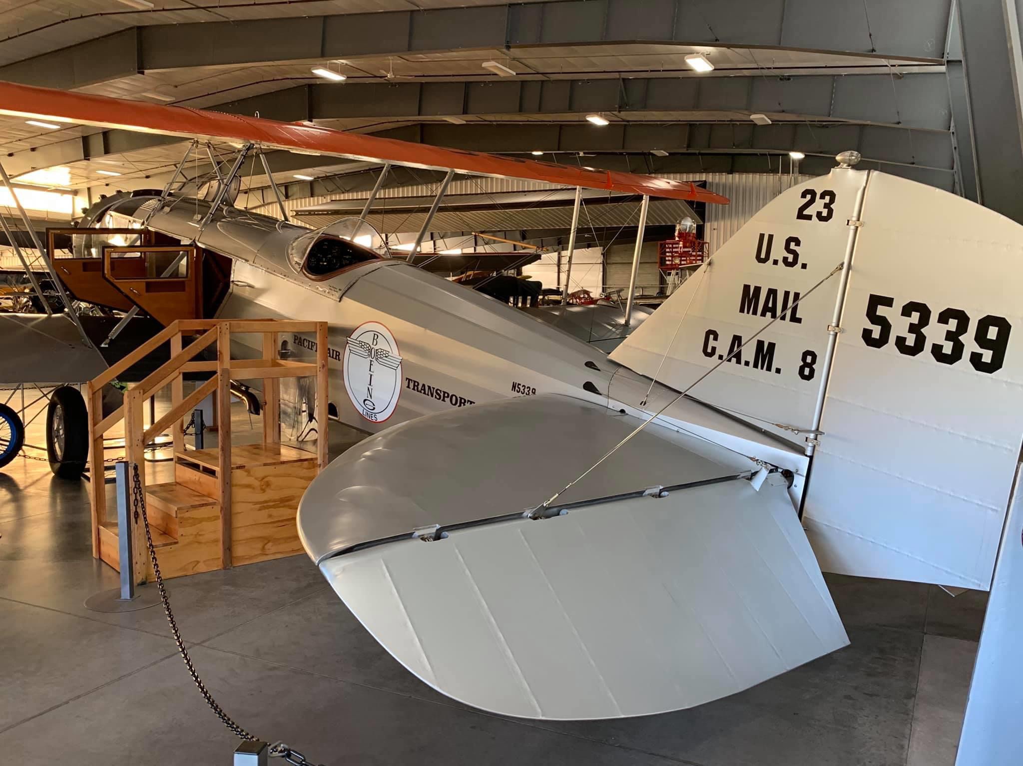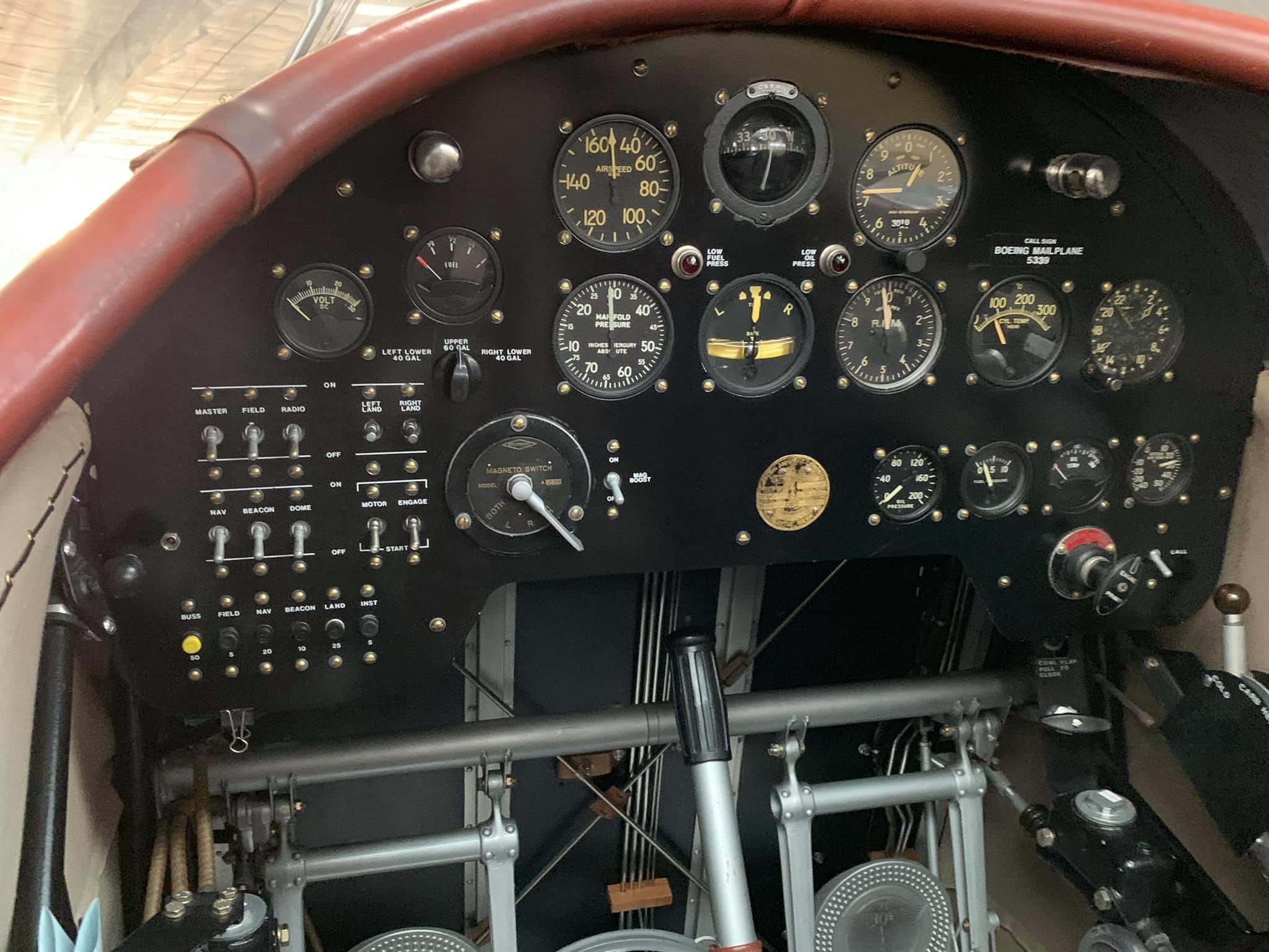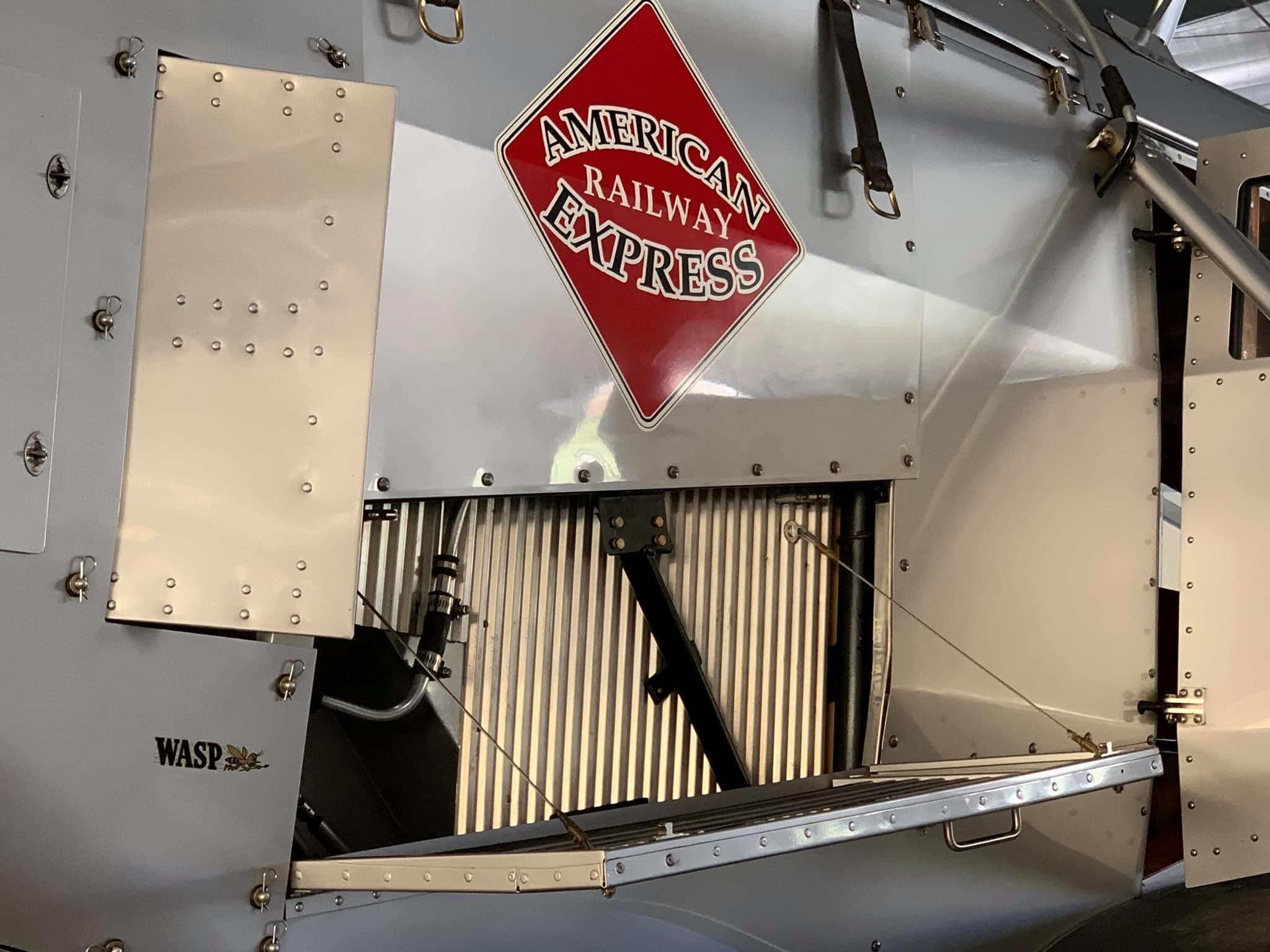 Addison Pemberton (of Pemberton & Sons Aviation of Spokane, and whose father recalled watching mail planes flying over Iowa in the 1930’s) acquired the remains of the aircraft, including the original data plate, from a member of the Oregon Aviation Historical Society who had salvaged pieces of the wreck over time and had them stored in a horse trailer in his backyard. Pemberton acquired the parts in exchange for a propeller, $5,000, and the promise to fully restore the aircraft. Some of the original pieces were used in the rebuild, including the alloy chromoly steel cockpit entry steps, wobble pump, and seat brackets, and pieces of wood were combined to make new gussets and cross-strips.