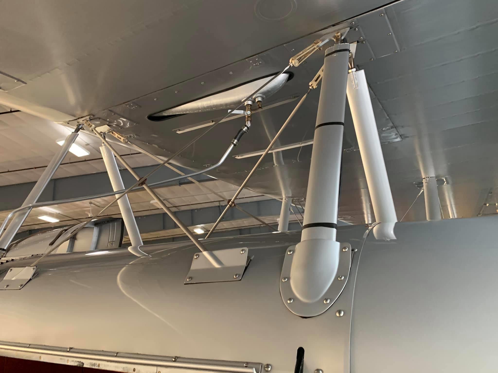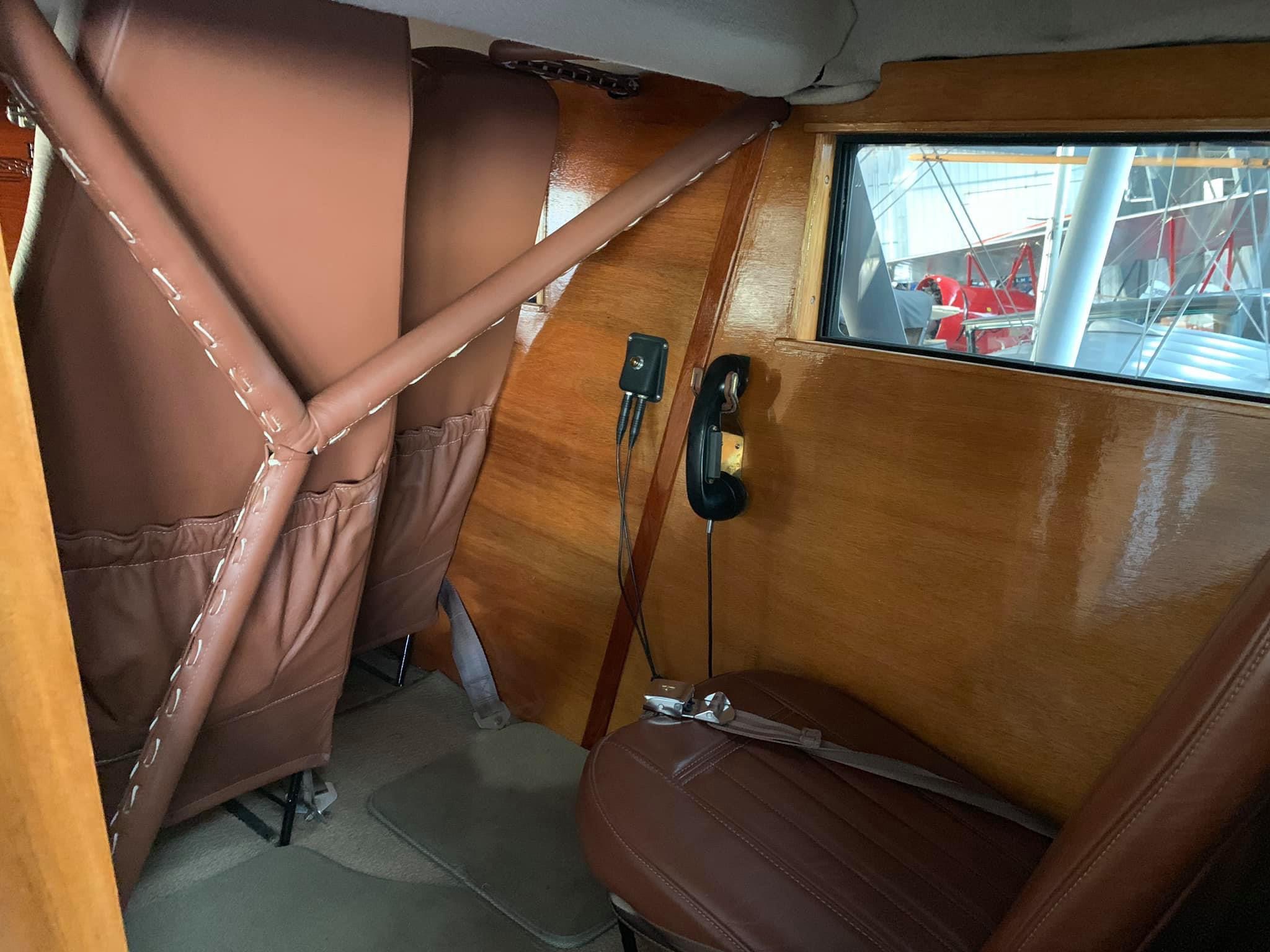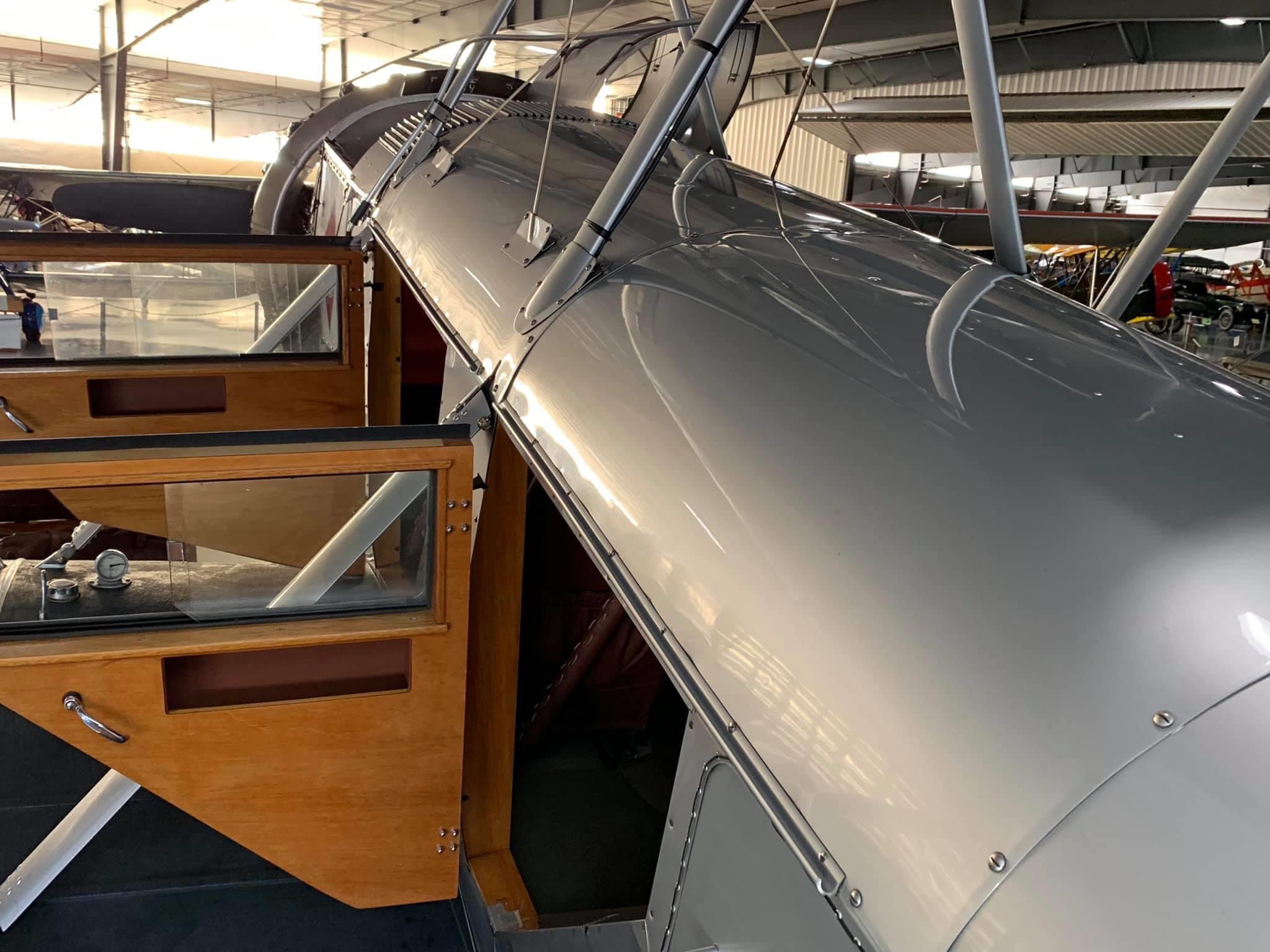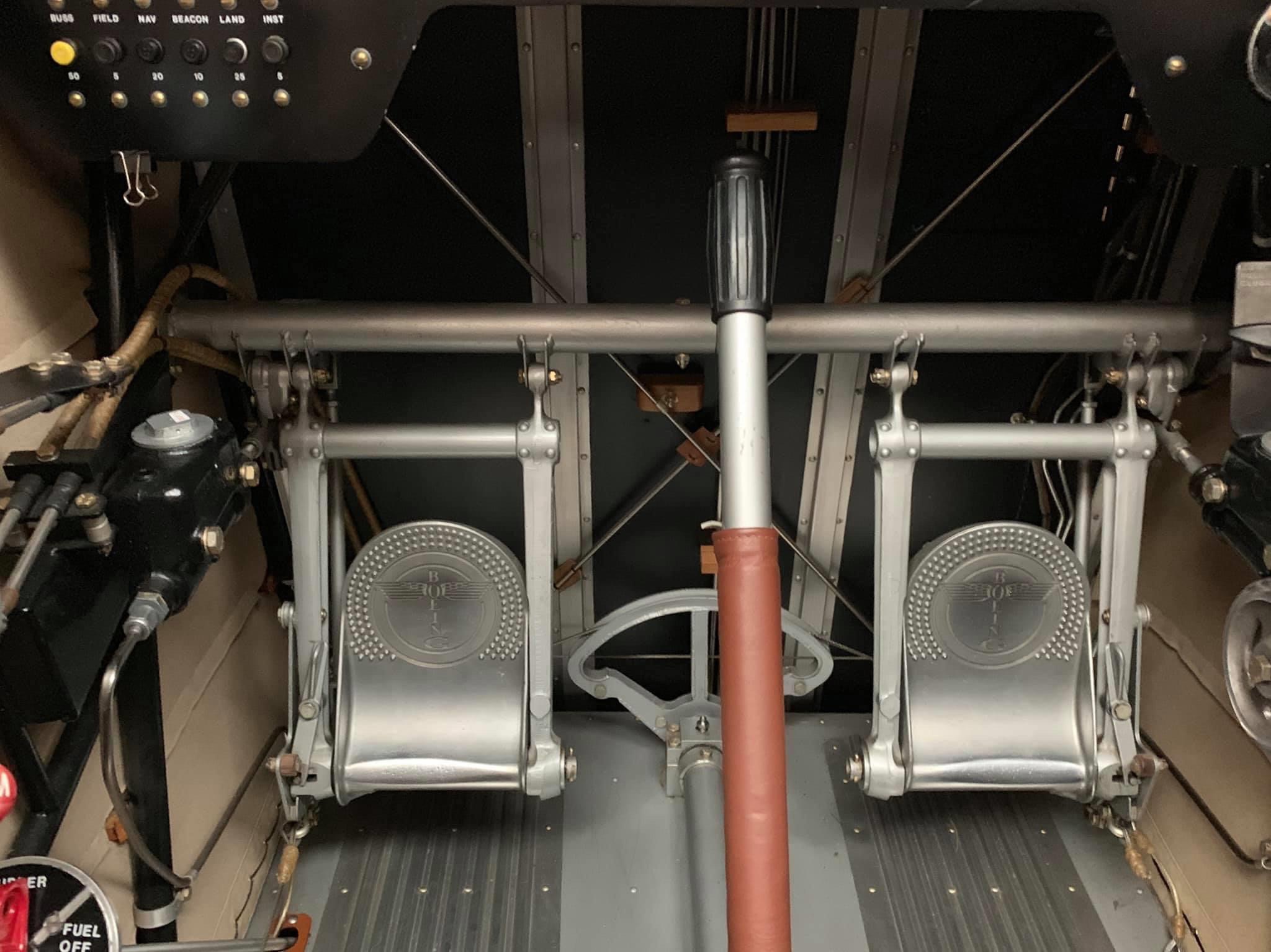 Addison Pemberton (of Pemberton & Sons Aviation of Spokane, and whose father recalled watching mail planes flying over Iowa in the 1930’s) acquired the remains of the aircraft, including the original data plate, from a member of the Oregon Aviation Historical Society who had salvaged pieces of the wreck over time and had them stored in a horse trailer in his backyard. Pemberton acquired the parts in exchange for a propeller, $5,000, and the promise to fully restore the aircraft. Some of the original pieces were used in the rebuild, including the alloy chromoly steel cockpit entry steps, wobble pump, and seat brackets, and pieces of wood were combined to make new gussets and cross-strips.
