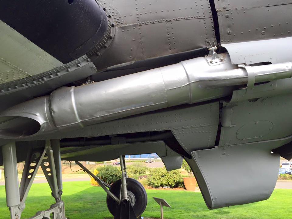 Detail of the engine exhaust pipes of Douglas C-47A Skytrain 43-15512 at the Evergreen Aviation and Space Museum. (Randy Malmstrom)