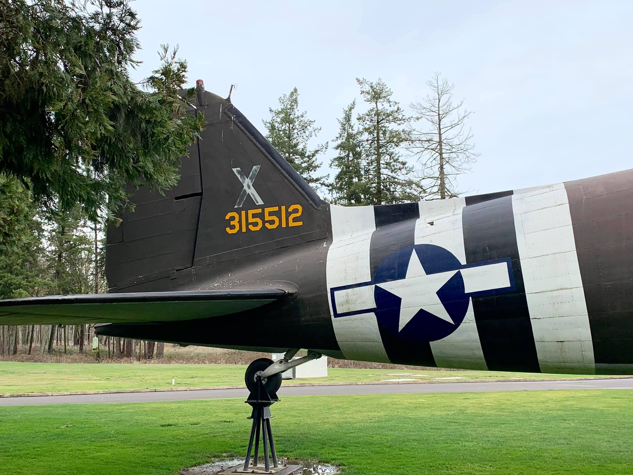 Douglas C-47A Skytrain 43-15512 displayed outdoors at the Evergreen Aviation and Space Museum. (Randy Malmstrom)