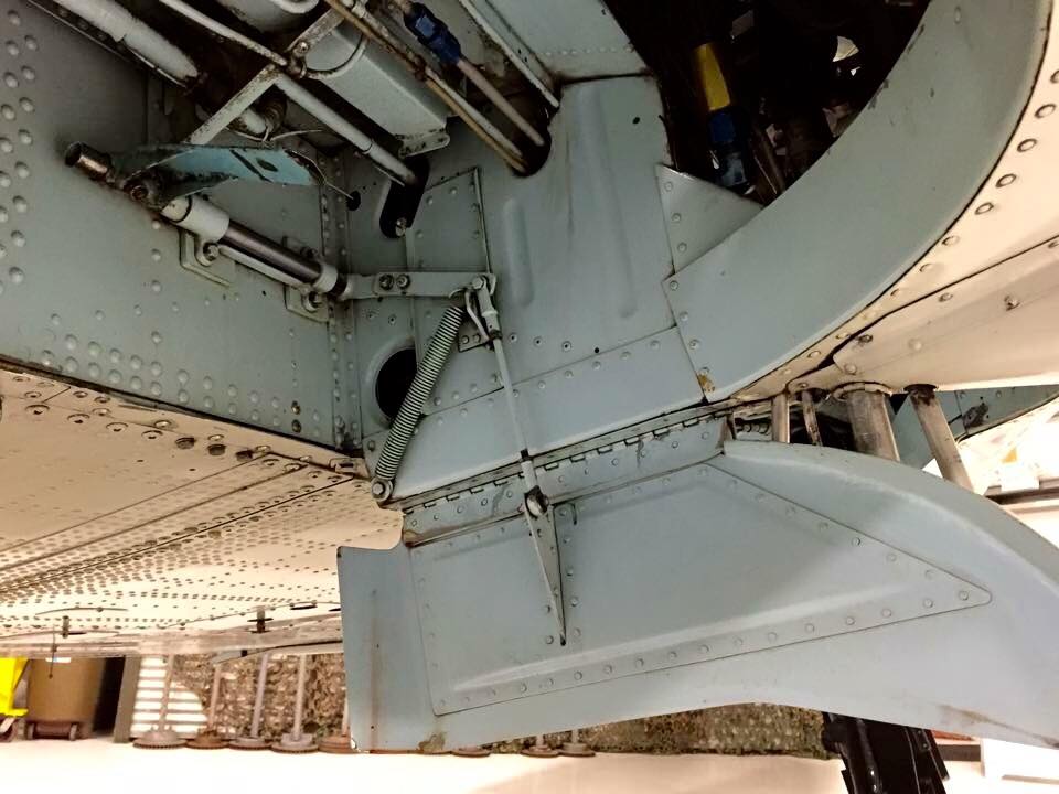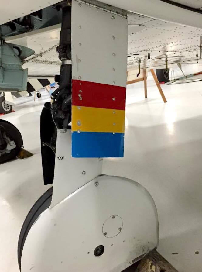 The aircraft was designed by Mitsubishi but other manufacturers such as Nakajima were contracted to build them, and there were a number of variants. Fitted with Type 99 20 mm. cannons in the wings (in later versions), two Type 97 7.7 mm. machine guns firing through the propeller, and it could carry two 132 kg. bombs. They were powered by Nakajima Sakae 12 or Sakae 21 engines. The A6M had mechanical landing gear indicator rods (or bayonets) attached to the landing gear struts and protruded above the wings when the gear was down (such as was used on the Fw-190 and quite a few other aircraft); however, a green light on the gear selector box also indicated when the gear was down. A6M’s also had a landing gear safety cable attached to the right strut – when the aircraft was on the ground and the oleo strut was partially retracted, the cable pulled a pin out blocking the pilot from moving the selector valve handle to the retracted position; and on takeoff and the strut expanded and the cable released the pressure on the pin so it could retract and allow the pilot to safely pull the retractor handle. The main undercarriage and brakes are hydraulically operated.