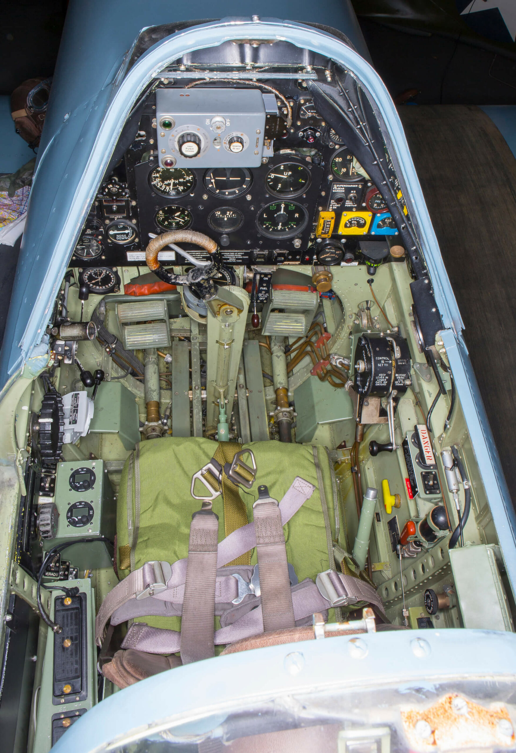 The engine is fitted with an electric pre-oil pump along with twin spin-on filters. It is paired with a Dowty-Rotol R12/4F5/4 propeller, which was overhauled in 2022 and has logged around 16 hours since then. According to the Platinum Fighter Sales President, Simon Brown, the aircraft has been on and off the market over the past few years. He pointed out that it differs from most Spitfires offered for sale, as it is a photographic reconnaissance version and was never fitted with guns, unlike the ones that are mostly available on the market. Avionics are kept fairly simple, with a Becker VHF radio and a Becker transponder installed. The aircraft is finished in PRU Blue, carrying its wartime “R” for Robert markings, while the interior still reflects its original wartime configuration. The aircraft is based at North Weald in the UK and is being offered with a fresh annual inspection. The aircraft last flew on October 1, 2025, and operates under a Permit to Fly (PtF).