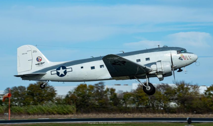 Later that week, the aircraft headlined Navy to Victory France, an event co-organized by the CAF French Wing and the Musée Volant Salis. During the gathering, DFW Wing Leader Chris Volpe unveiled a surprise: a French flag, painted on the R4D’s nose opposite the others. After a short discussion, he and Duchemin decided to position it just beneath the aircraft’s iconic nose art. A brief ceremony followed, marked with champagne and cheers. “It’s an incredible honor,” said Duchemin. “Chris’s trust in our unit means the world to us.”