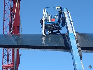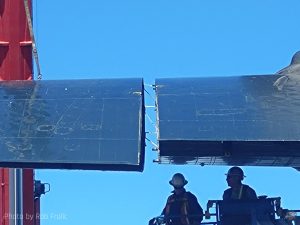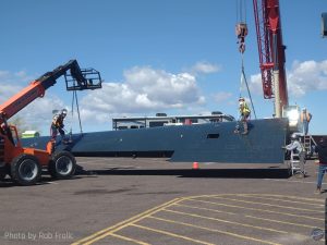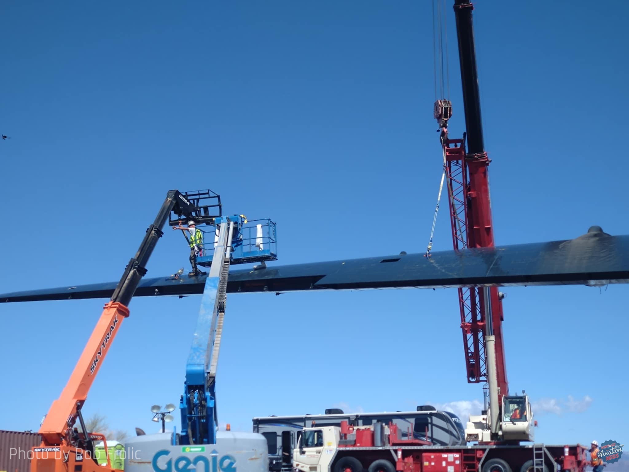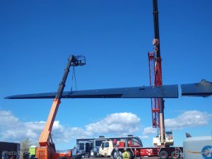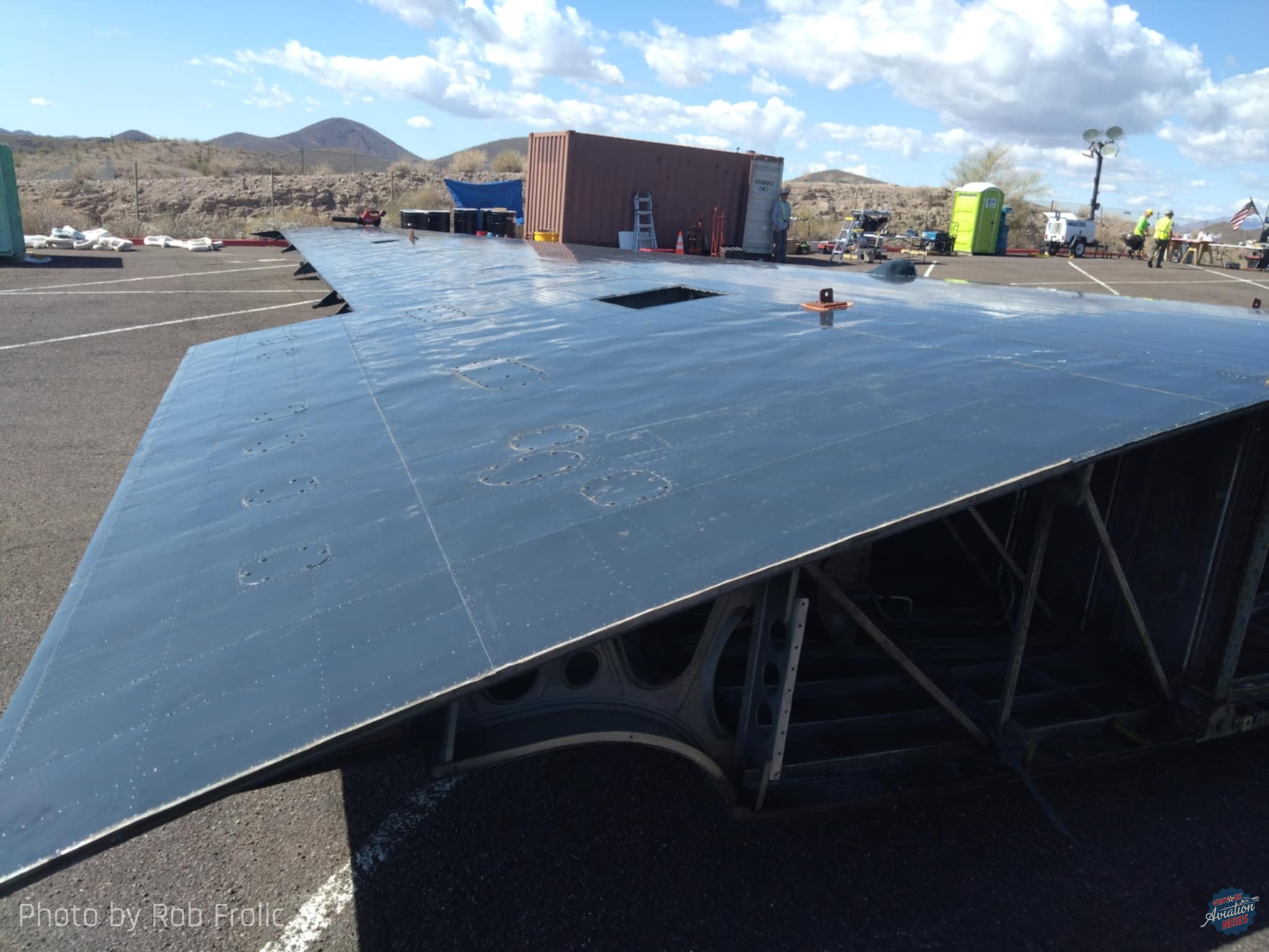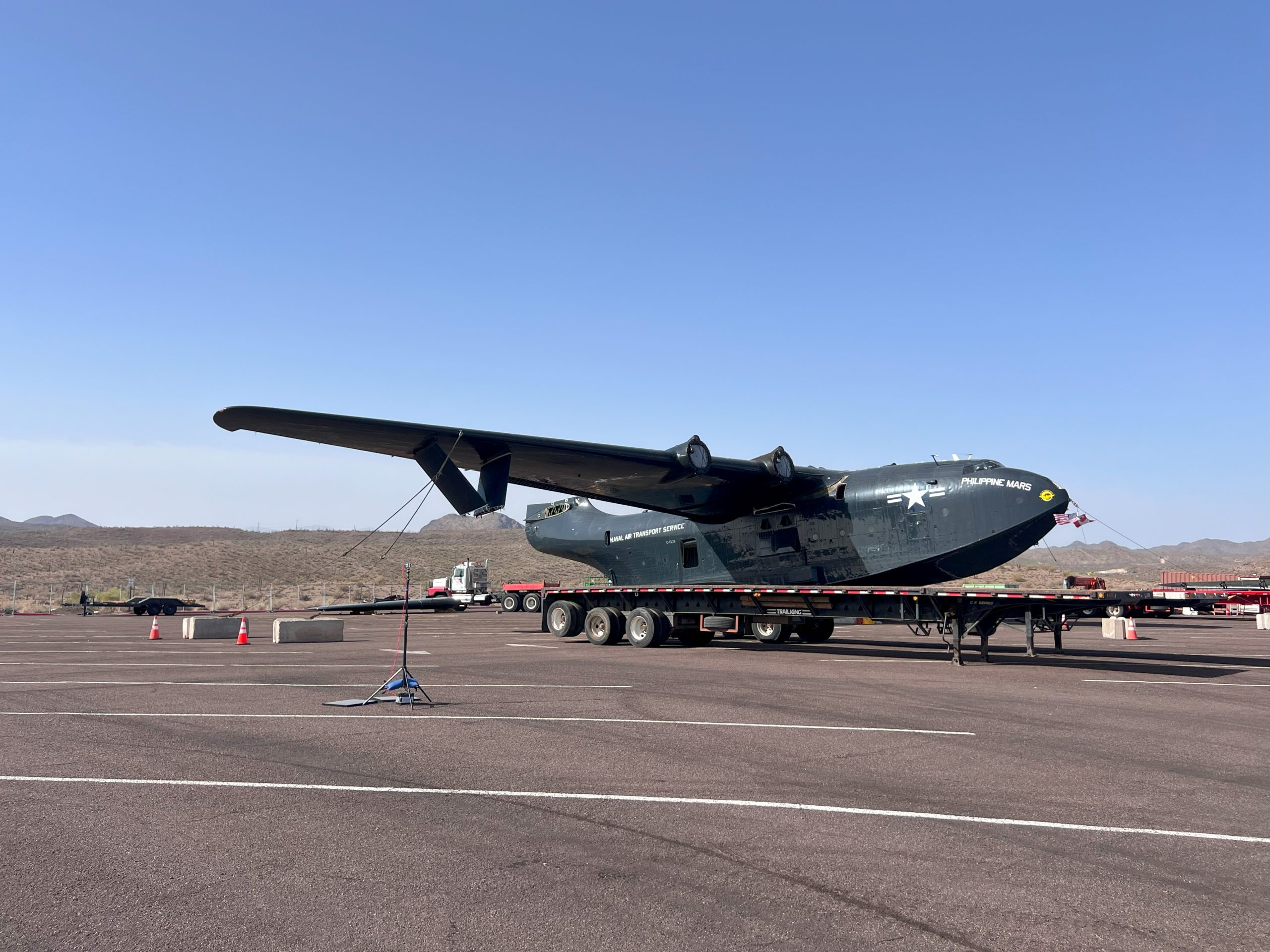 As of writing, portions of the Philippine Mars, such as the engines and propellers, have already arrived at the Pima Air and Space Museum, while the tail assembly and wingtip pontoons have been carefully removed from the aircraft and are being transported by truck to Tucson. Eventually, the wings will be disassembled and shipped down from Lake Pleasant, and it is most likely that the final portion of the large flying boat transported from the lake to the museum in Tucson will be the former Navy transport/fire tanker’s hull. The job of disassembling and transporting the Mars has come into the hands of Phoenix-based company Southwest Industrial Rigging, whose cranes have been used to lower portions of the Mars on the trailers intended to carry these parts to Tucson.