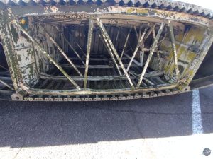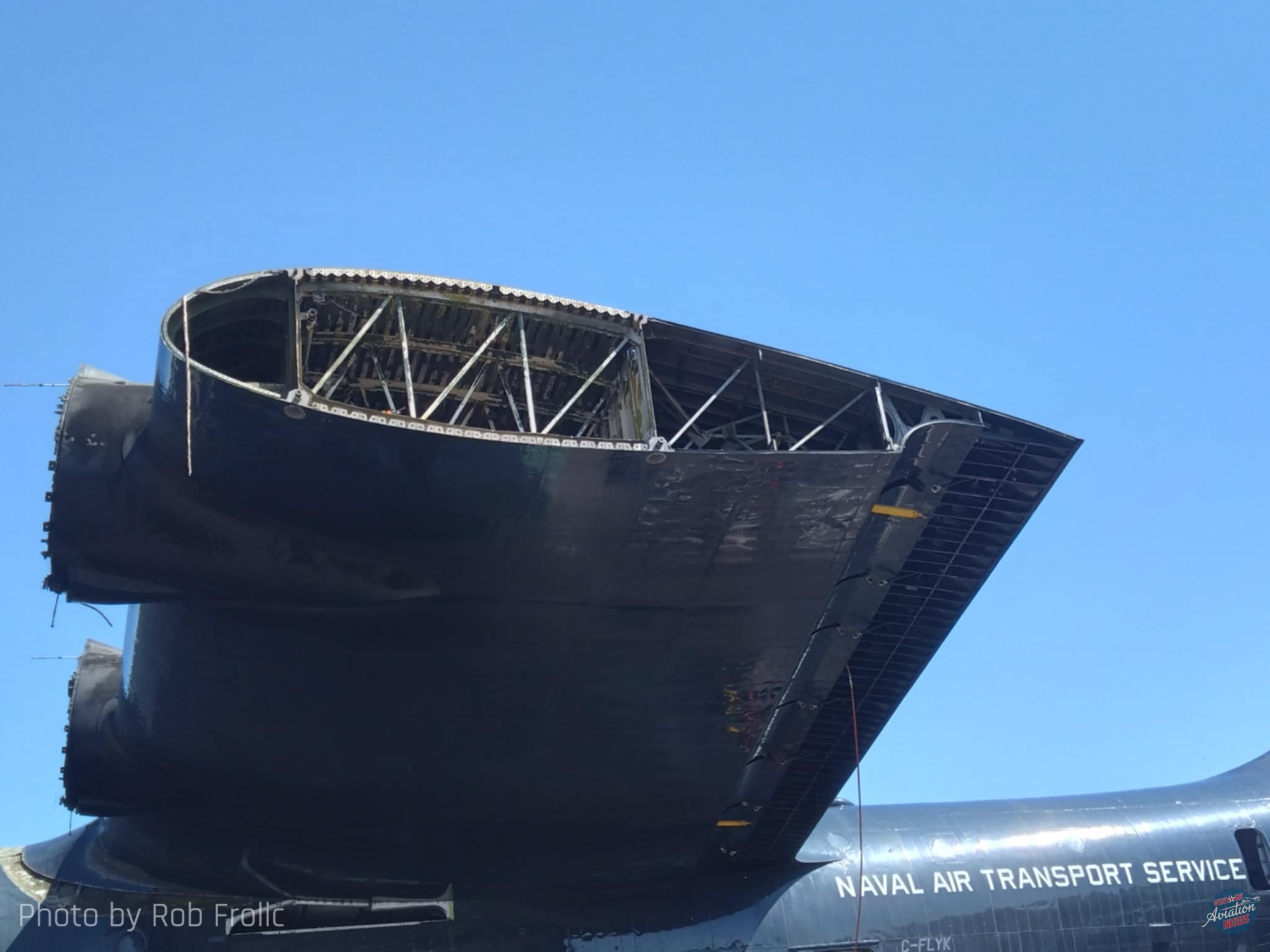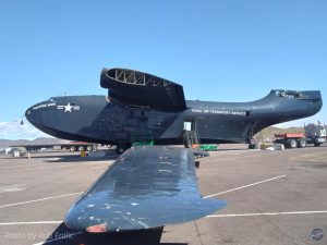 At Vintage Aviation News, we have been covering the Martin JRM Mars “Philippine Mars” in its final journey from Sproat Lake, British Columbia, to the Pima Air and Space Museum in Tucson, Arizona (you can read our archives on Philippine Mars HERE). Since its final flight from San Francisco to Lake Pleasant, just northwest of Phoenix, on February 10, the aircraft has been undergoing a careful disassembly at the boat ramp on the south shore of Lake Pleasant.