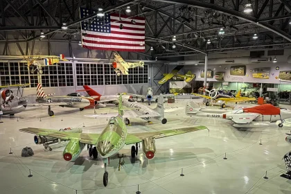 After testing, the North American Aviation XP-86 was approved for production as the F-86A. It became operational in 1949. The first squadron to fly the F-86 held a naming contest and from 78 suggestions, the name “Sabre” was chosen. The F-86 Sabre was in production until 1955 at North American’s Inglewood, California, and Columbus, Ohio, plants. It was also built under license by Canadair, Ltd., Sain-Laurent, Quebec, Canada; the Commonwealth Aircraft Corporation, Port Melbourne, Victoria, Australia; and Mitsubishi Heavy Industries at Nagoya, Aichi Prefecture, Japan. A total of 9,860 Sabres were built. They served with the United States Air Force until 1970.